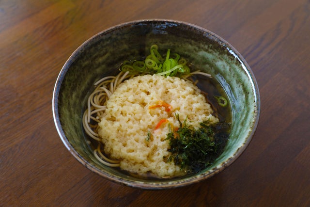 青森市と五所川原市が誇る梵珠山。その湧き水に漬けたそばを専用のそば粉と混ぜ合わせる独自の製法でつくられたおそばは、添加物を一切使用せず、滑らかな舌触りと、独特の食感が特徴です。