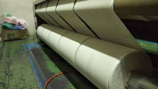 銅繊維を使用することにより、新品段階でも若干のシワと風合いは硬めに仕上がっております。