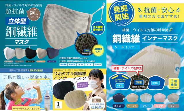 これまでに「銅繊維インナーマスク」や「立体型銅繊維マスク」などの銅繊維を使用した様々な商品を販売してきました。