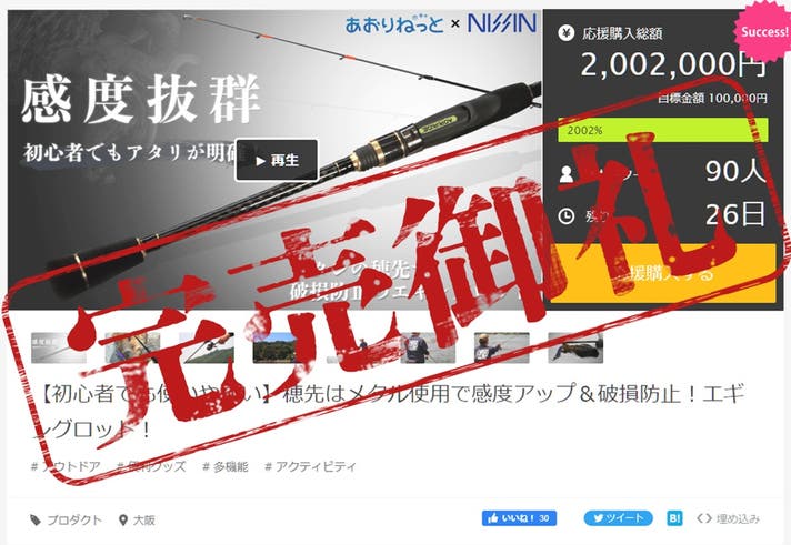 2022年のエギングロッドのプロジェクトでは2002%の達成することができ、たくさんの応援購入ありがとうございました。
