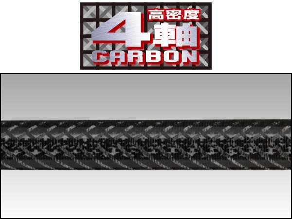ブランクはネーム部からグリップエンドまで高密度4軸カーボンを採用し、曲げ強度に優れ粘りのある仕様