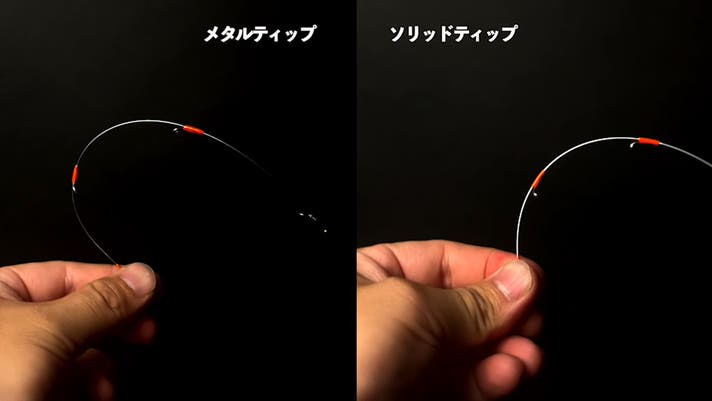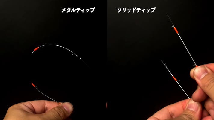 <従来のソリッド穂先タイプとチタン穂先タイプの動きの違い>