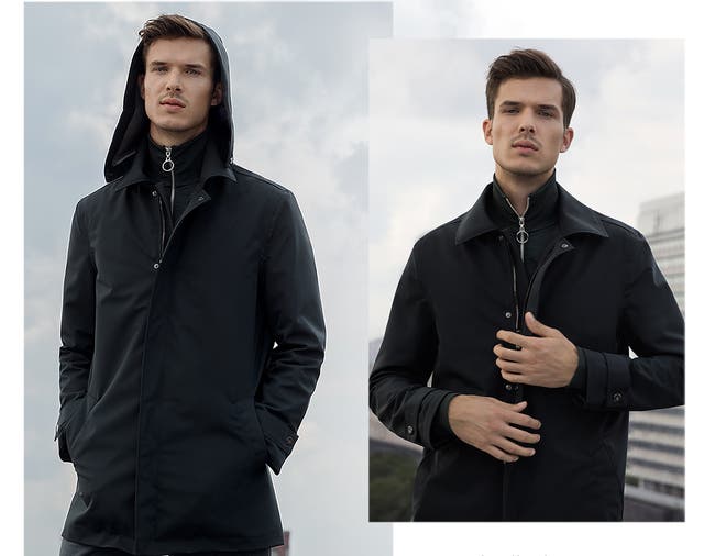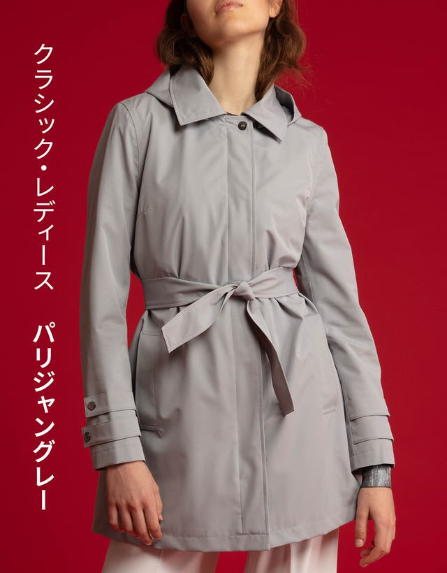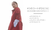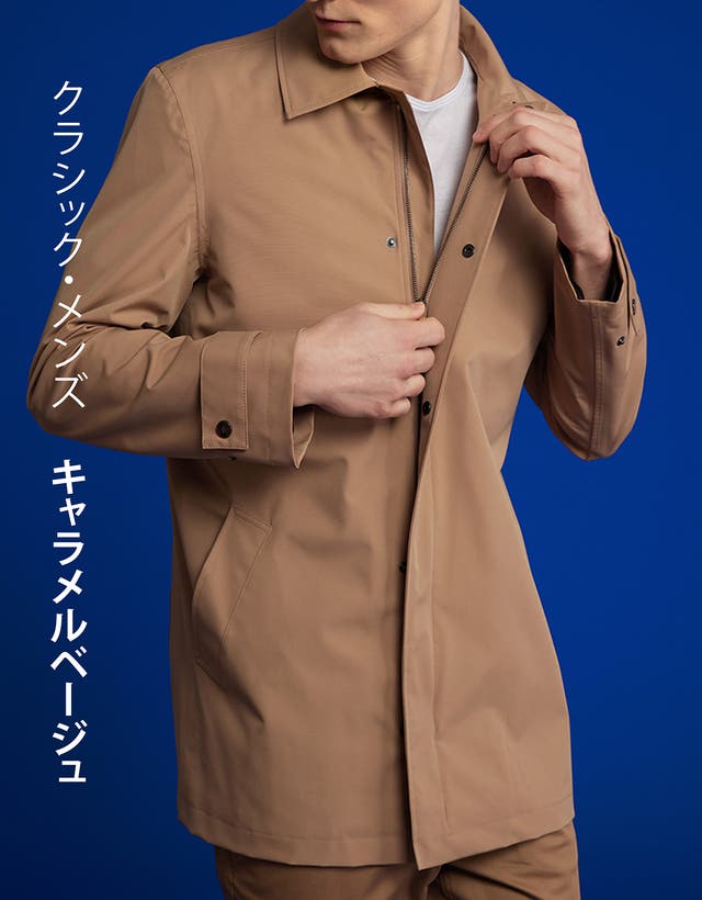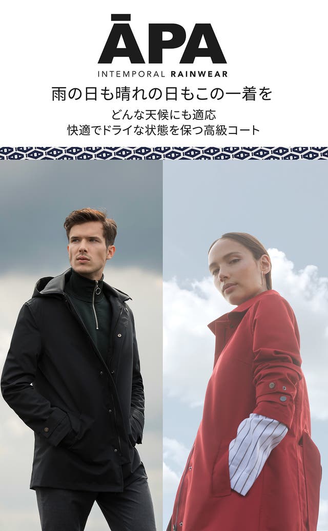 今日の天気が不安定?アパ・コートがあればもう大丈夫。 レインコート、トラベルジャケット、ビジネスコート、ミッドシーズンのアウターとしての4つの多彩な機能がこの一着に。