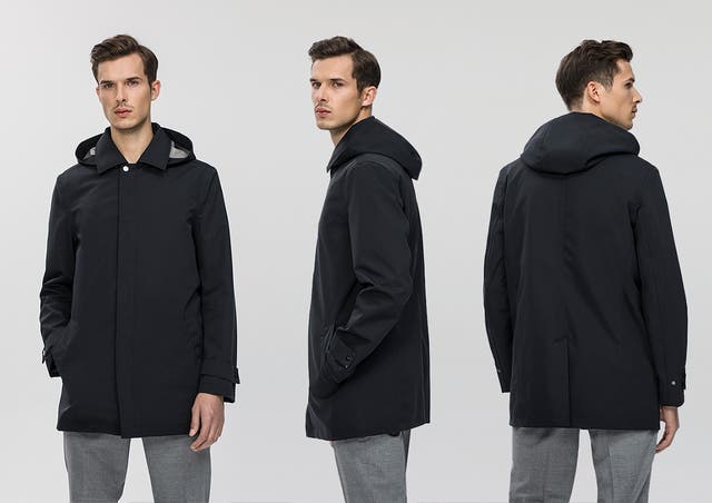 - 天候を問わず、快適でドライな状態を保つために、透湿性を自動的に調整するデザイナーコート