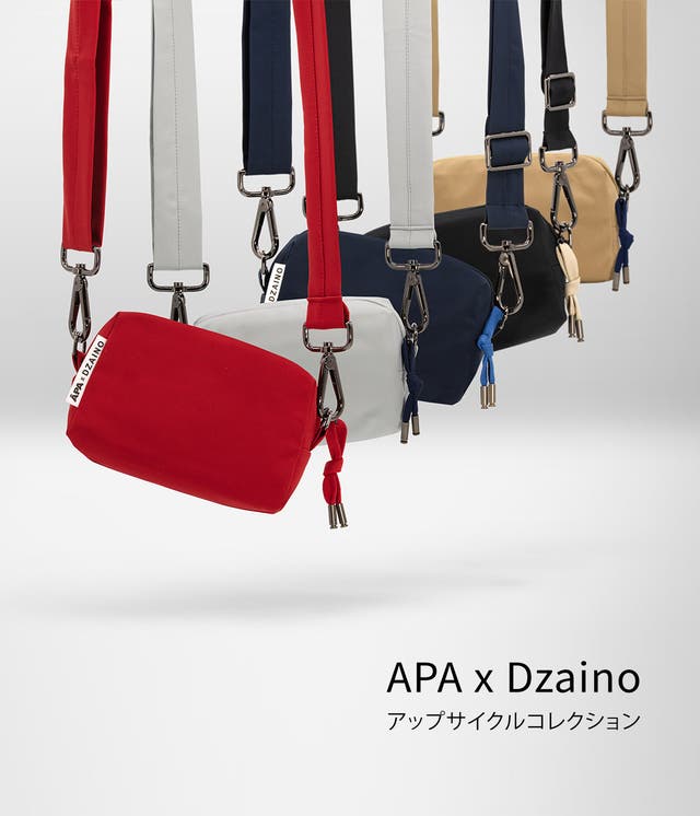 APA x Dzaino アップサイクルコレクションは、余剰材料を使用して作られたミニマルで超実用的なトラベルポーチです。高品質で軽量、防水性もあり、すべてヨーロッパで生産されています。