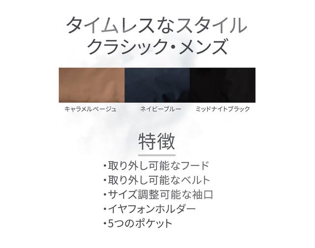 このMakuakeキャンペーンを通じて日本での販売が初めてとなる「クラシック」モデルは、正真正銘のデザイナーコートです。素材、職人技、美しさ、細部に至るまで細心の注意を払い、ヨーロッパで100%の工程を経て製造されています。