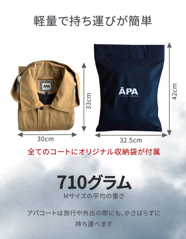 「APAコート1着」と「トラベルポーチ1つ」(33% OFF)