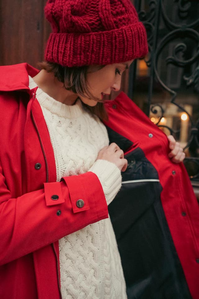 朝の通勤ラッシュの地下鉄や、自転車での通勤、肌寒い夕方の外出、突然の雨など、さまざまな状況で一貫した快適さを提供するコートです。