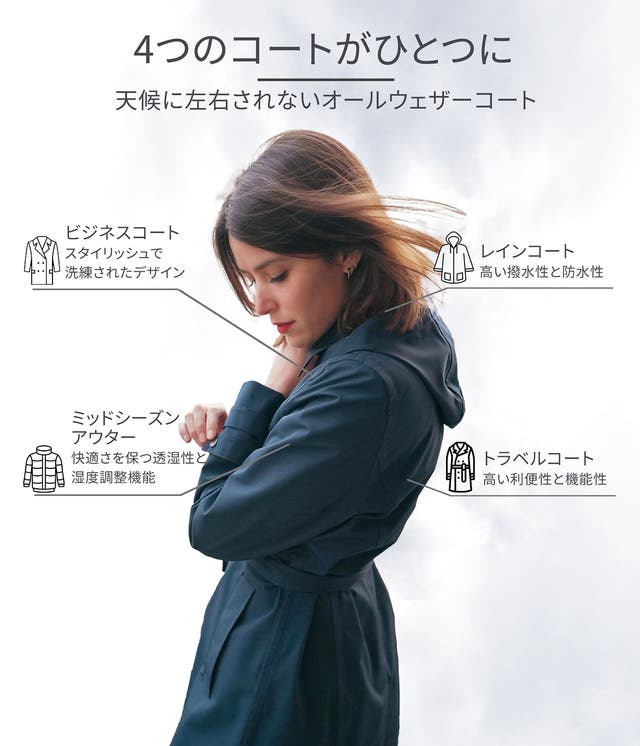 - この一着でレインコート、トラベルジャケット、ビジネスコート、ミッドシーズンのアウターとして機能