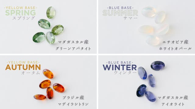 パーソナルカラーに合わせた4色展開で、春・夏・秋・冬、それぞれのシーズンタイプに合う天然石を厳選しました。それぞれに個性と魅力がありますので、個別にご紹介したいと思います。