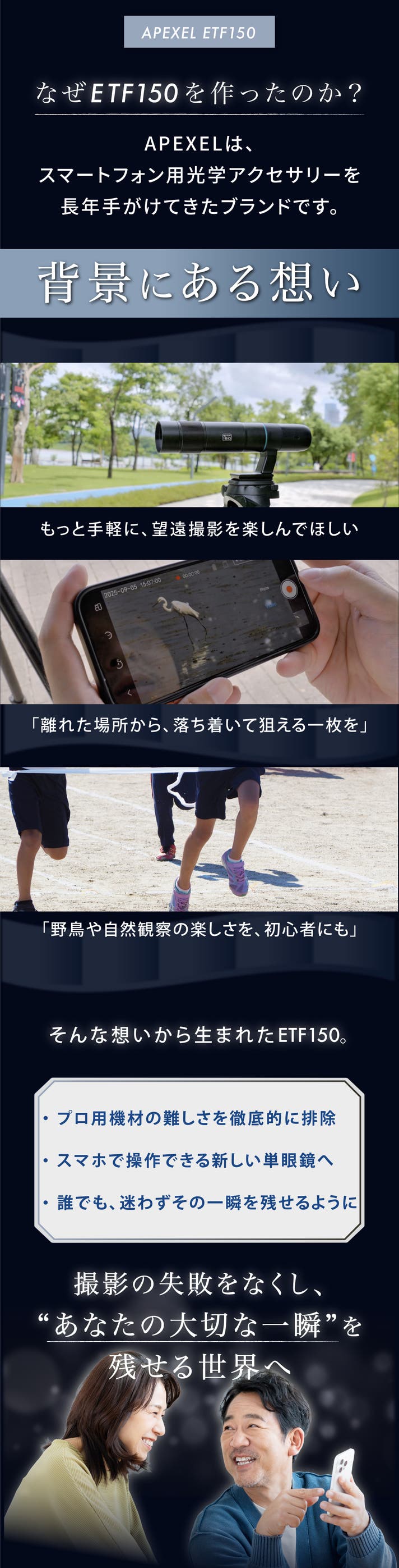 ETF150は、そんなAPEXELが培ってきた光学設計とスマホ連携技術を融合させたモデルです。