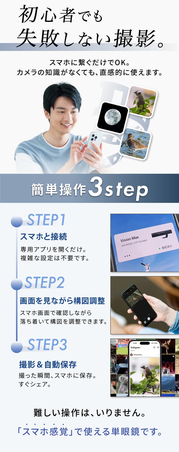 APEXEL ETF150は、スマートフォンと連携して、遠くの被写体を観察・撮影できるデジタル単眼望遠デバイスです。