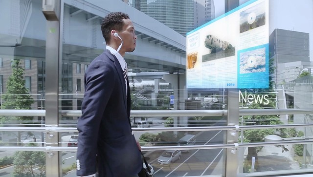 エレベータに乗っている主人公が、スマートなイヤフォンを使って、AIである「サマンサ」にアクセスし、音楽を聴いたり、メールをチェックしたり、さらには会話まで行ってしまいます。