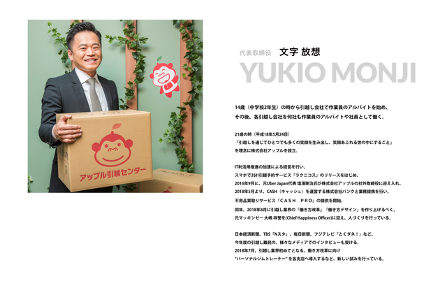 - アップル引越センター中卒社長「文字放想(もんじゆきお)」の自叙伝。