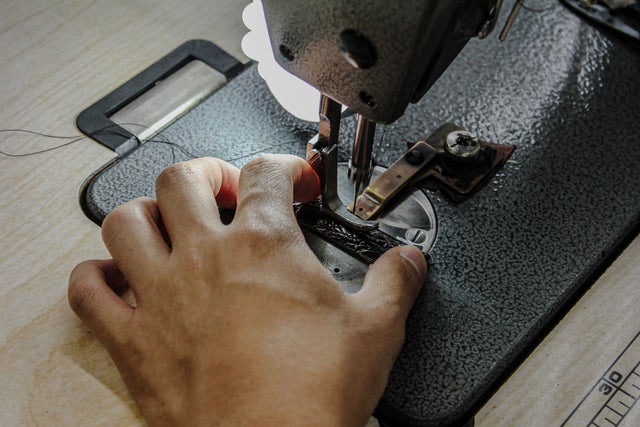 ステッチ入れや念入れなど、細かい仕上げを手作業で行っています。