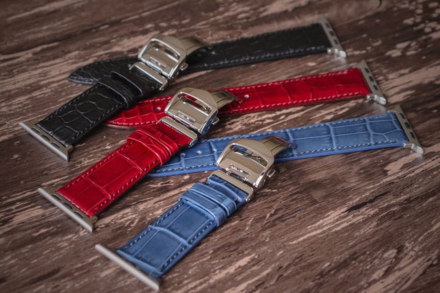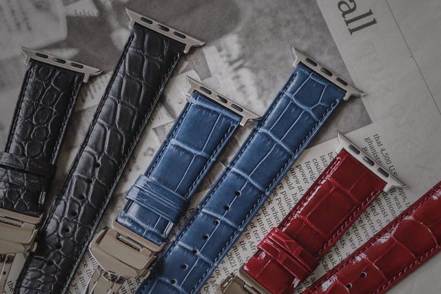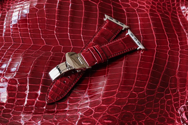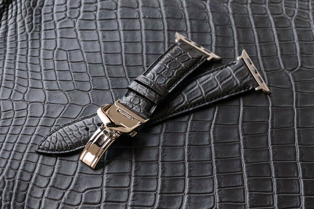 - 腕元に本物の輝きをもたらす本格クロコダイル製アップルウォッチ用バンド
