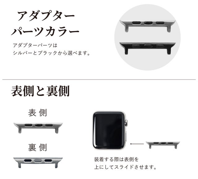 ●アダプターパーツ(アップルウォッチとのコネクター部品)は、【シルバー・ブラック】の2色からお選びいただけます。