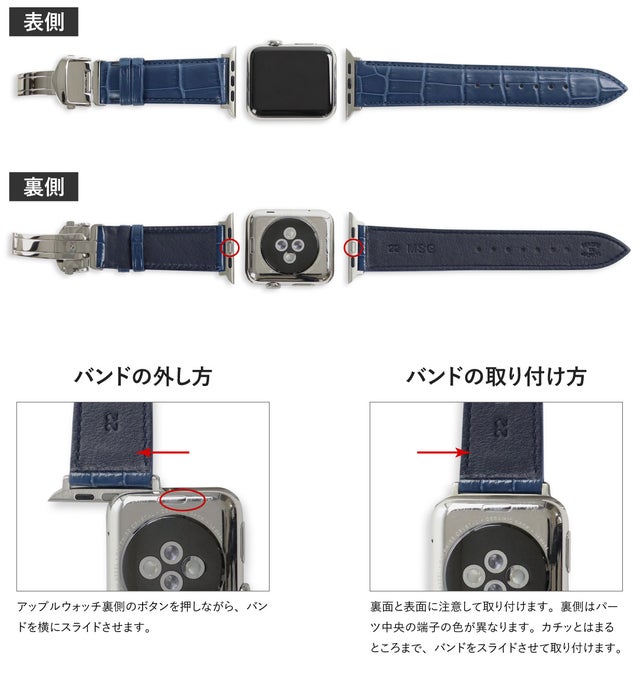 ※Apple Watchへ装着する方向は腕回りのサイズに合わせてお好みでお選びください。