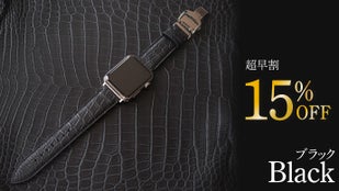 【超早割】クロコダイルーアップルウォッチ用バンド ブラック 1点 15%OFF