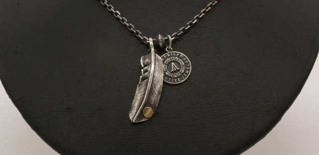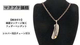純銀製ビンテージ加工フェザーネックレス(純金入り)