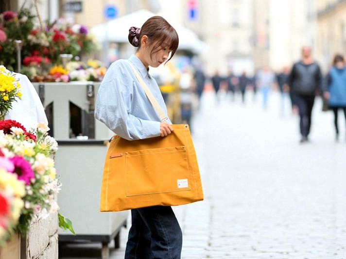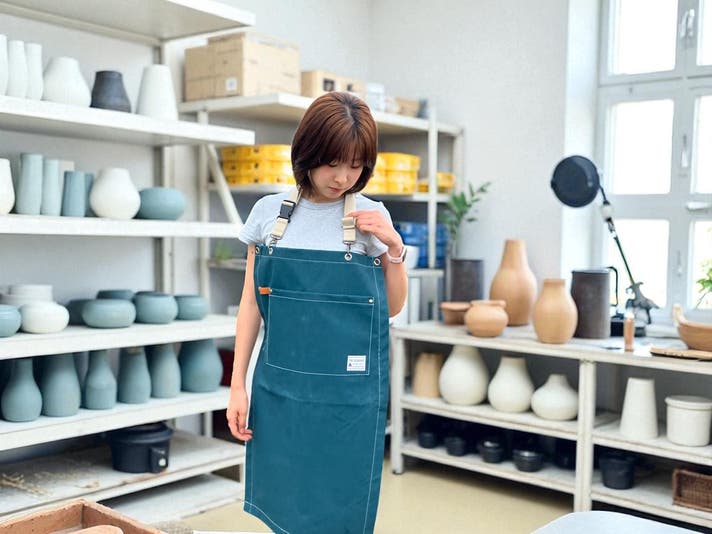 アート、デザインの学校や職場、工房に勤められている方等、様々な場面でモノを持ち運び、必要な時にエプロンとしてお使い頂けます