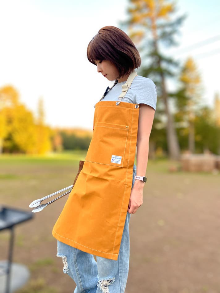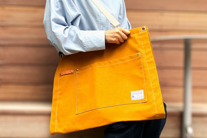 ・完成した「APTON」“魔法のエプロンバッグ”のマスタード1着