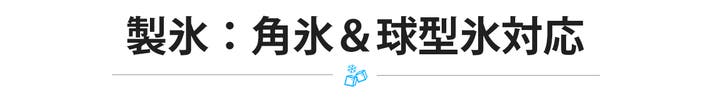 製氷モード:40ml/120ml/180mlから選べる氷作成プリセットで、ウイスキー用のゆっくり溶ける球型氷から通常の角氷まで対応。