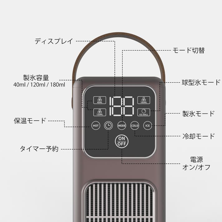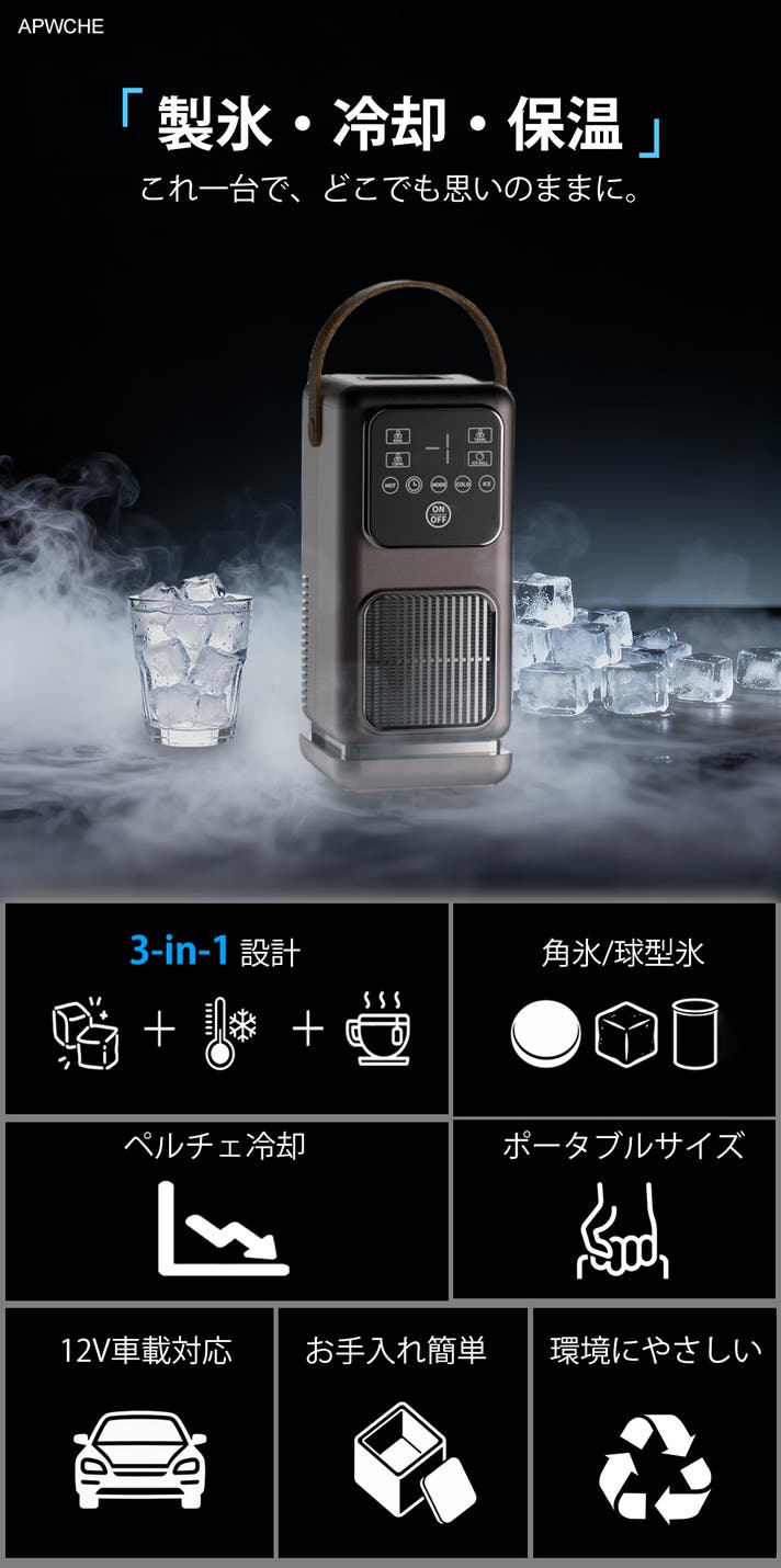 - 3-in-1:これ1台で、氷も作れて、飲み物も冷やせて温められる。