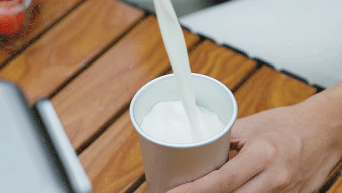 オレンジジュースやコーラなど糖分を含む飲料すれば、ミキサーいらずでスムージーのような食感に仕上がるのも可能です。
