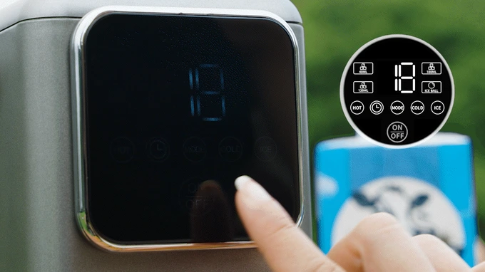 モード選択、温度表示、製氷量調整、タイマー予約まで、すべてをワンタッチで直感的に操作できるタッチパネルを搭載しています。