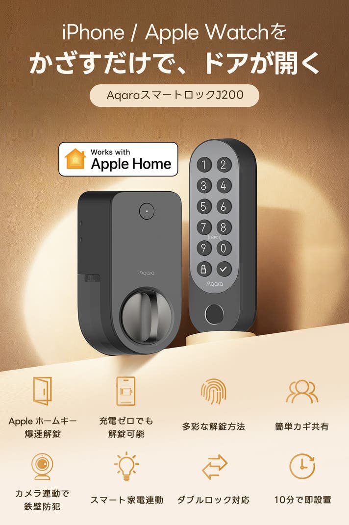 - スマホで「かざして爆速解錠」Appleホームキー対応、セキュリティ重視。充電切れでもOK!