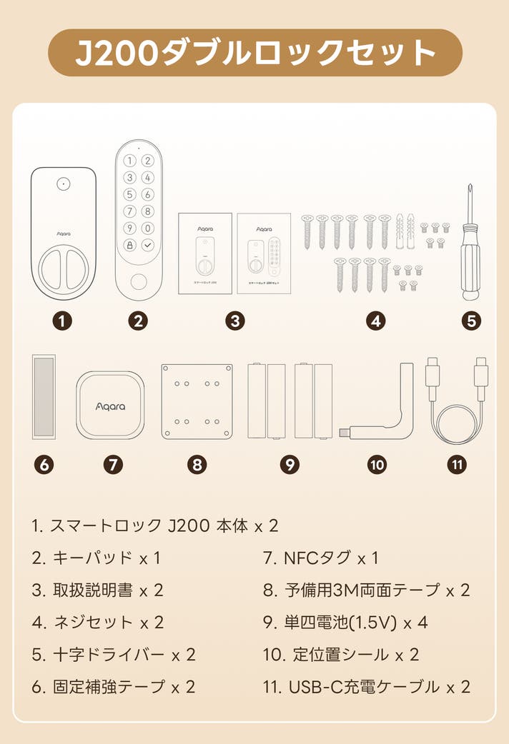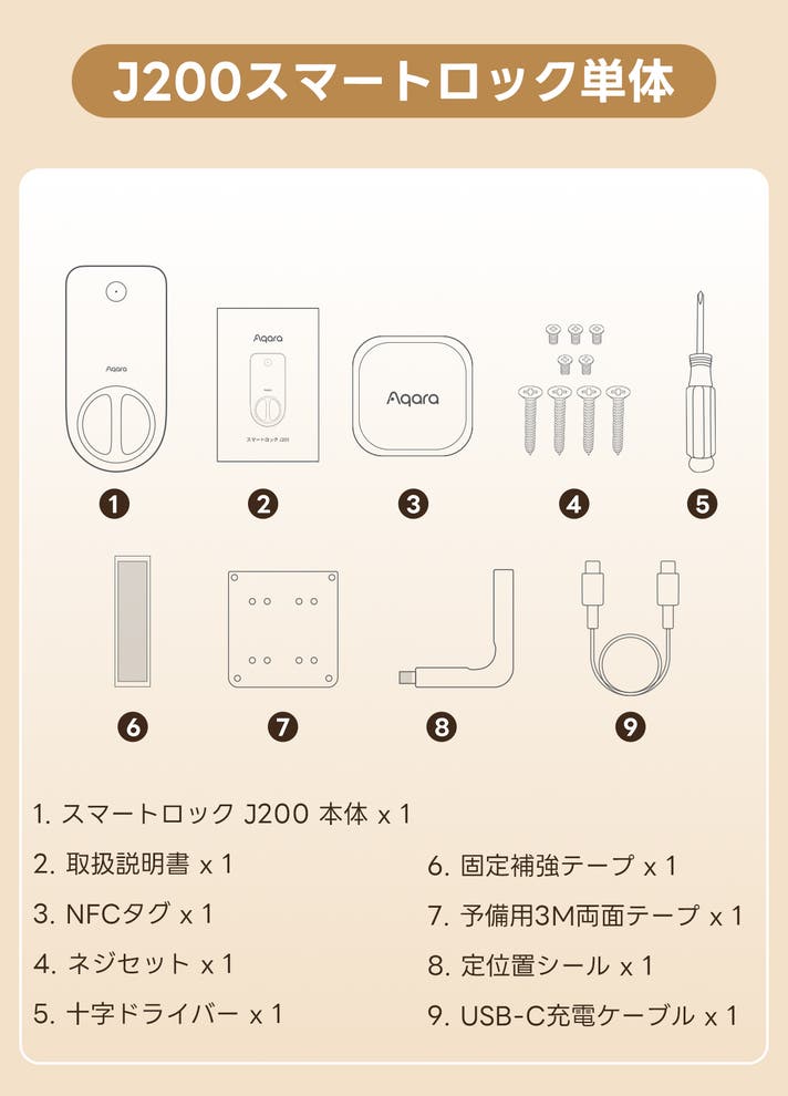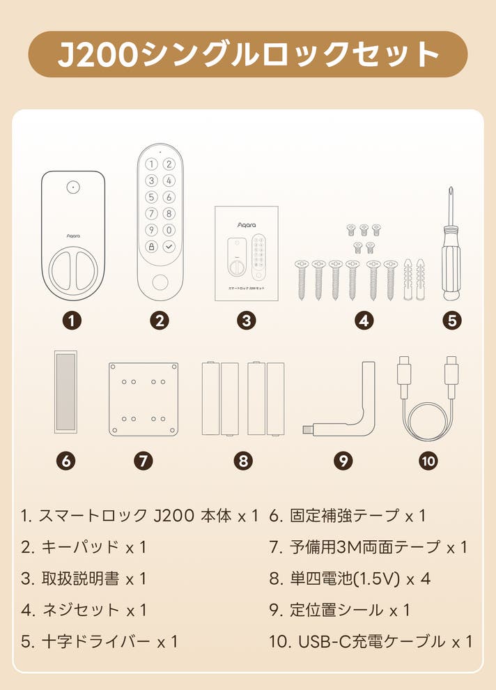 1) スマートロック J200 本体 x 1