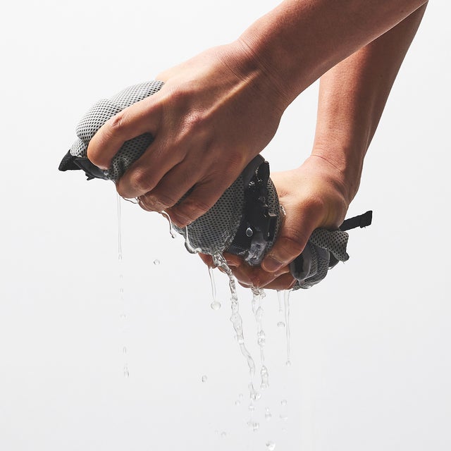 水を含むとふにゃっと柔らかな感触に変化します。柔らかくなった素材は身体にピッタリと寄り添い、冷水を纏っているようなフィット感で着用いただけます。