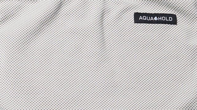 熱を持った身体が保水生地に触れることで、打ち水効果・気化熱効果により体表面の温度を放熱してクーリングします。さらに、表面にもひんやり機能付きの素材を採用しています。ひんやり機能が内側の保水素材をさらに冷やし、メッシュ構造の素材が空気を通して気化熱効果を高めて空冷してくれます。