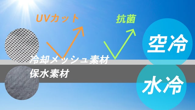 - 驚異の吸水パワーの新素材を使用!水冷&空冷効果のダブルクーリングでとにかくひんやり!