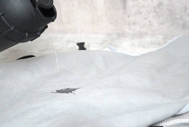 1.裏面の素材の色が変わるまで水をかけるか、水に浸してください。