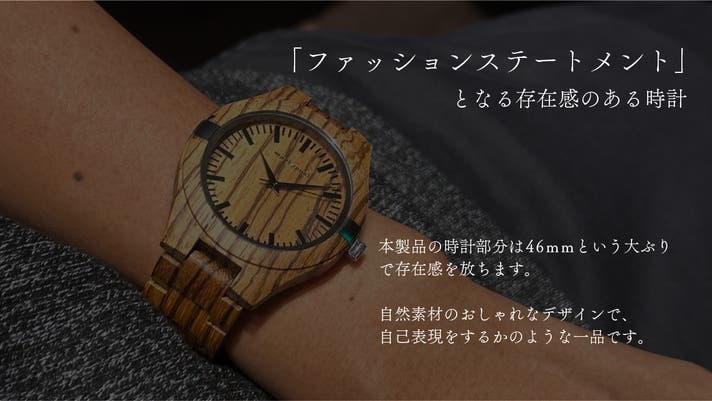 環境に優しいゼブラウッドを選ぶこと、木製腕時計という珍しい商品を見つけること、自然素材のおしゃれなデザインのアイテムを選ぶこと、など身につけるあなたの個性が表現されます。