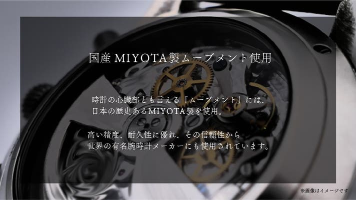 腕時計の心臓部とも言えるムーブメントには、世界に誇る日本の歴史あるブランド「MIYOTA」製を採用しており、良質で高品質な製品に仕上がっています。