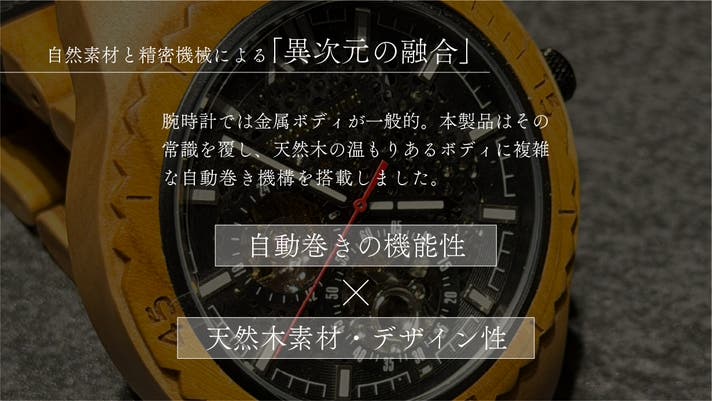 「Makuake(マクアケ)」は、実行者の想いを応援購入によって実現するアタラシイものやサービスのプラットフォームです。このページは、 プロダクトカテゴリの 「【”生命の樹"ギリシャ産オリーブ×精密機構】が美しい【自動巻き】の木製腕時計」プロジェクト詳細ページです。