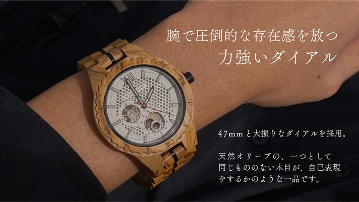 - 希少な木材 "生命の樹"オリーブの木で創る、一生モノの自動巻き腕時計。