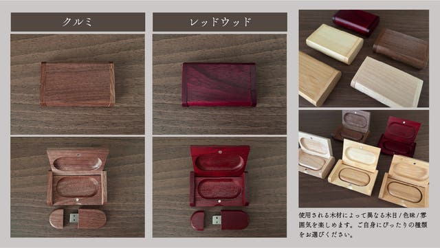 - 全5色の木材とオリジナル刻印で、世界で一つだけのUSBメモリに!