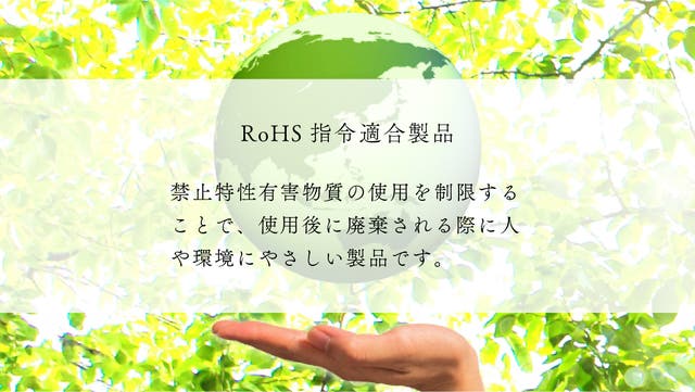 また、本製品は環境保全を意識するRoHS(ローズ)指令(※下記6項目にて)の対象となっており、環境にも配慮しています。