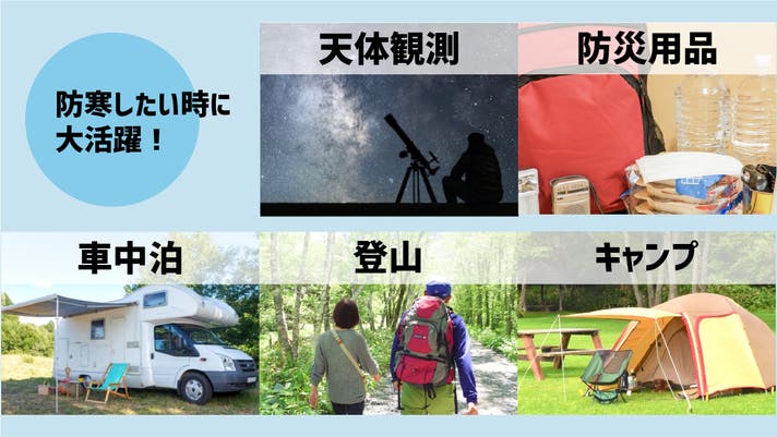 用途はキャンプや星空観察星空観察から、音楽フェス、サッカー・野球などのスポーツ観戦まで。全て、「着たまま」できちゃいます。