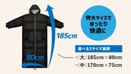 185cmサイズであれば一般的な成人男性が足の方までカバーできる大きさです。2サイズあるので、女性も丁度良く着れると思います!