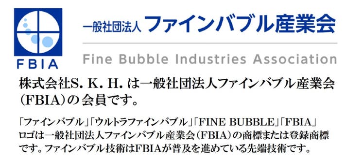 日本の「FBIA(一般社団法人ファインバブル産業会)」の会員として、技術的信頼性と長年の実績をもとに、家庭から産業まで幅広い分野へ製品を提供しています。