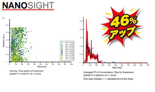 ※1 配管長さ約2mの条件で、水流1mLあたり(水温23.5°C±1°C・ホース流量15L/分)に含まれる発生量(水質・環境・時期により数値は変動します)ウルトラファインバブル測定NanoSightNS500(FBIA指定試験機関)(超純水、2024年 07月17日、計10回の測定)個数:平均約10,300万個、気泡径:平均径 約0.127μm、最頻径 約0.0966μm