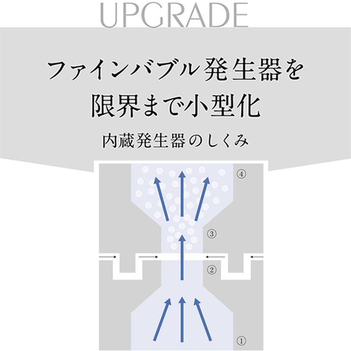 見えないほど小さな泡が、肌をやさしく包み、汚れを落とし、水の流れを変える。