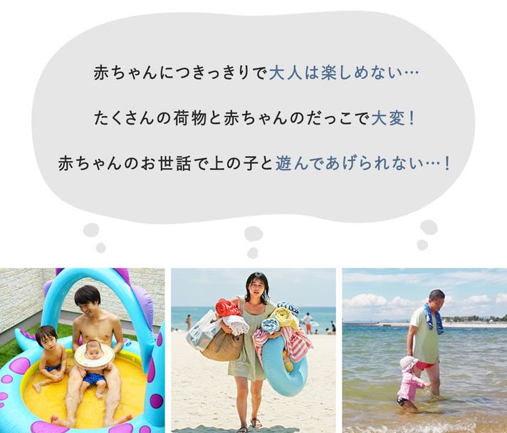 お兄ちゃん・お姉ちゃんとプールや海で遊びたいけど、下の子を抱っこしながらは大変…。急に走り出したら、とっさに動けないかも…!!