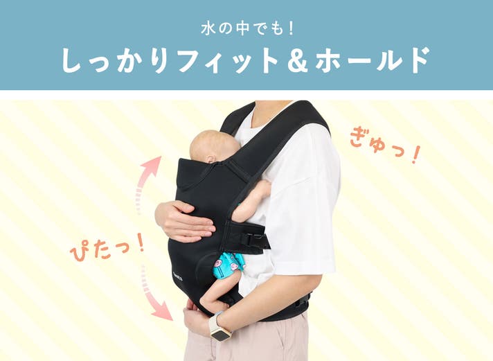 ●プールや海では浮力が働きやすく、赤ちゃんがずれる・浮き上がることがあります。しっかり支え、長時間手を離さないようご注意ください。