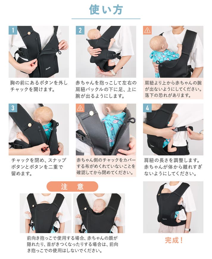●この抱っこ紐を使用したまま、お子様を寝かせないでください。